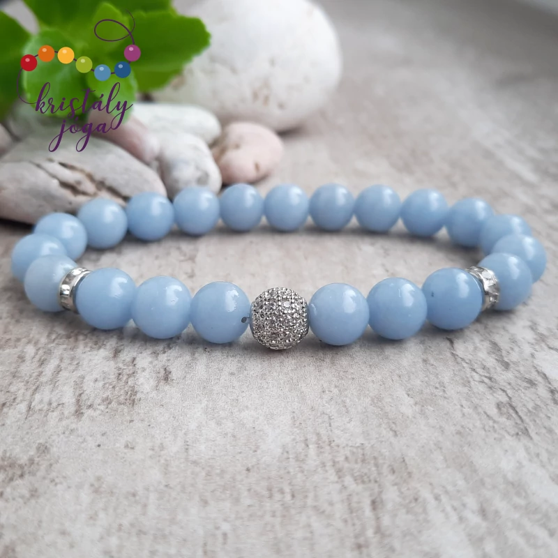 Angelit 8 mm-es ásvány karkötő, strasszal
